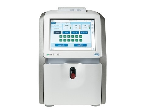 Eines dieser Geräte ist das Point-of-Care-System cobas b 123 von Roche, ein von Krankenhäusern verwendeter Biosensor zur Messung von Blutgasen, Elektrolyten, wie etwa Kalium, Natrium und Calcium, sowie von Metaboliten, einschließlich Glukose und Laktat. Das cobas b 123 ist ein Tischgerät, das 22 Siebdruckschritte und 16 Dispensierschritte umfasst. Mit einem einzigen Klick erhalten Sie Informationen zur Qualität des Bluts des Patienten.