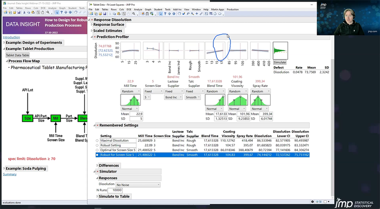 Bei der Übertragung von Produkten, Prozessen und Systemen aus der Entwicklung in die reguläre Fertigung muss sichergestellt werden, dass der Prozess oder das System eine große Bandbreite an kritischen Inputs wie beispielsweise von Material toleriert. Dadurch kann die Fertigung leichter eine gleichbleibend hohe Produktqualität und einen hohen Durchsatz gewährleisten, um das beste Produkt zu den geringstmöglichen Kosten zu liefern. Darüber hinaus erhält die Produktion so mehr Flexibilität, um den Prozess in Zukunft anzupassen, wenn sich andere Faktoren außerhalb unserer Kontrolle ändern.