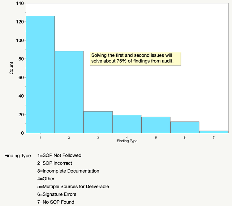 Das Pareto-Diagramm für die Prüfungsergebnisse in der obigen Abbildung 1 zeigt die grundlegenden Ergebnisse. Um die Entscheidungsfindung zu unterstützen, können Sie einen Hinweis zum Diagramm hinzufügen, wie in Abbildung 3 unten gezeigt.