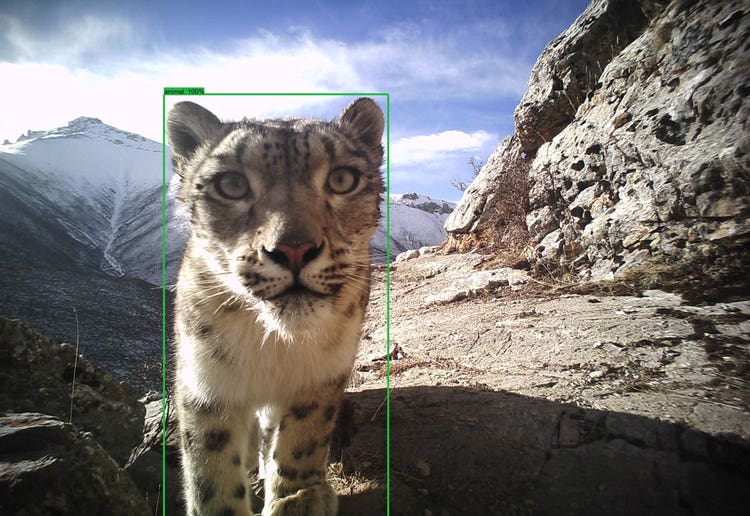 Monitoring wildlife is critical for managing wilderness areas and guiding conservation efforts. Traditionally, wildlife monitoring involved manually surveying individual animals along a transect of some width and length. Manual surveying is costly and time-consuming, especially when conducted over large areas, such as those of the U.S. National Parks. In addition, manual surveying often misses rare, hard-to-observe species. For example, snow leopards are notoriously difficult to observe in the wild, making it hard to estimate the population size of this elusive and endangered feline.