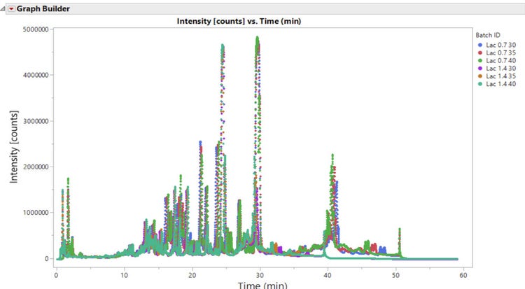 Apply functional data analysis and functional design of experiments (FDOE) for the optimization of an analytical method to allow for the accurate quantification of two biological components.