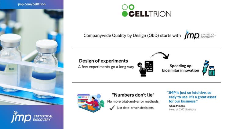 Celltrion has made a commitment to extensive Quality by Design (QbD) applications in product development and process control. JMP® statistical software is an indispensable tool.