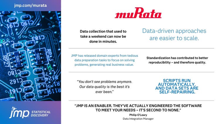 At Murata Finland, automated data integration processes in JMP® extract monumental value from the digital factory