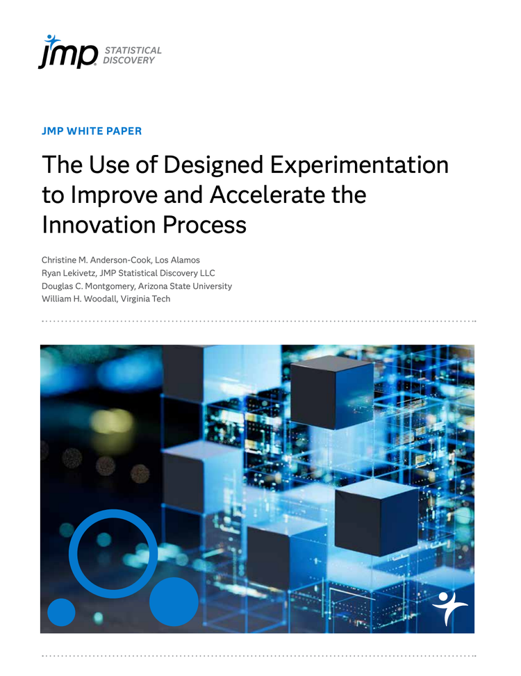 In this white paper, we review some key characteristics of innovation and describe the ways in which the innovation process can be aided, accelerated, and improved using designed experiments. We also provide you with best practices around pre-experimental planning, practical advice on conducting effective experiments, and tips on how to get the most from your post-experiment discoveries.