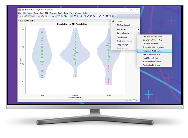 See additional JMP Pro features in the Advanced Statistical Methods section below.