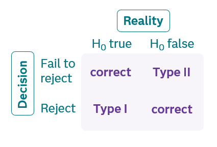 You perform a hypothesis test and make a decision, but was the decision correct? In reality, only one of the two hypotheses can be true.
