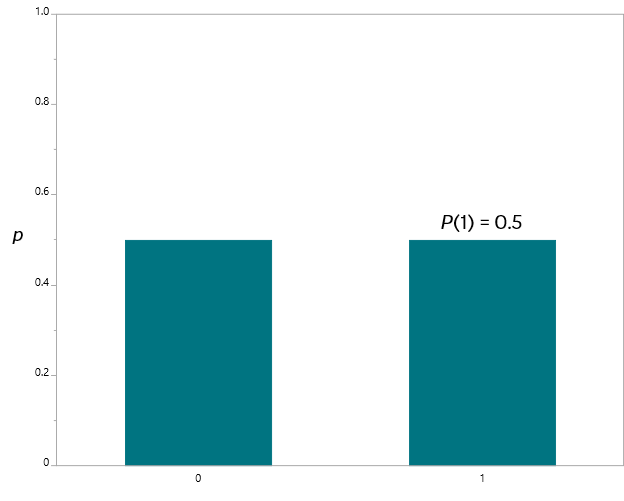 The graphs below illustrate Bernoulli outcomes where p = 0.5, p = 0.6, and p = 0.1.