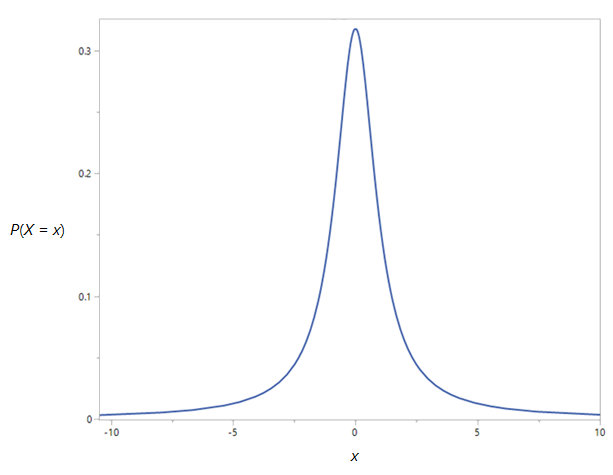 The graph below shows an example of a Cauchy distribution with location parameter 0 and scale parameter 0.5.