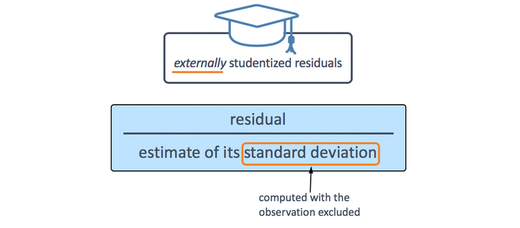 An alternative is to use studentized residuals. A studentized residual is calculated by dividing the residual by an estimate of its standard deviation. The standard deviation for each residual is computed with the observation excluded. For this reason, studentized residuals are sometimes referred to as externally studentized residuals.