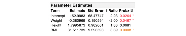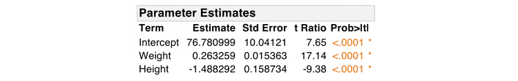 Notice how the parameter estimates for Weight and Height have changed.