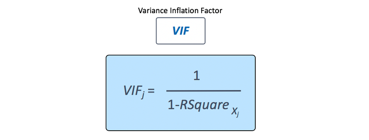One method for detecting whether multicollinearity is a problem is to compute the variance inflation factor, or VIF. This is a measure of how much the standard error of the estimate of the coefficient is inflated due to multicollinearity. The VIF for a predictor is calculated using this formula.