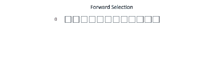 An alternative to backward selection is forward selection. With forward selection, instead of starting with a full model, we start with a model containing only the intercept. Then we slowly add terms to the model, one at a time, starting with the predictor with the lowest p-value. This continues until all the remaining terms that are not included in the model are above a specified p-value threshold.
