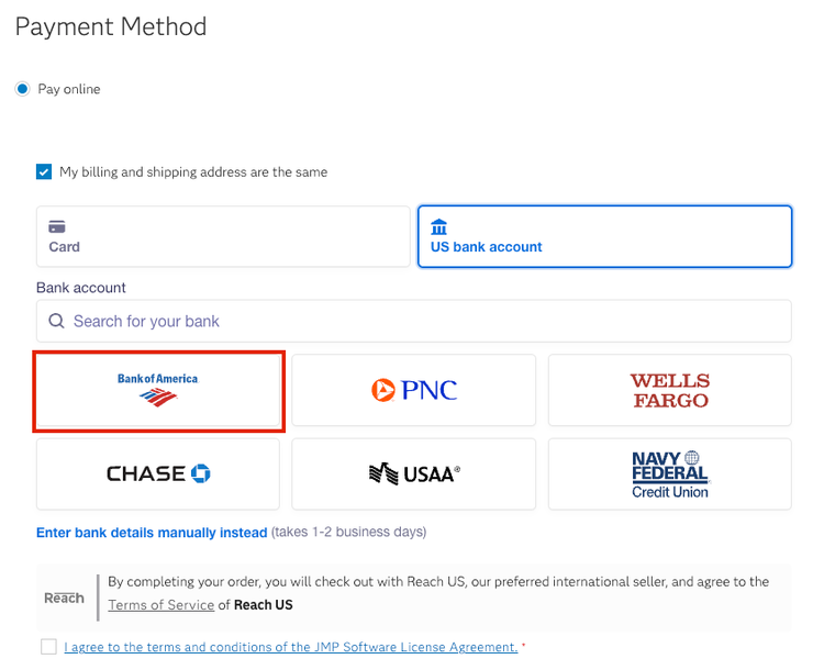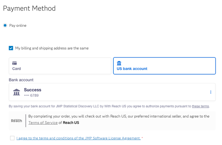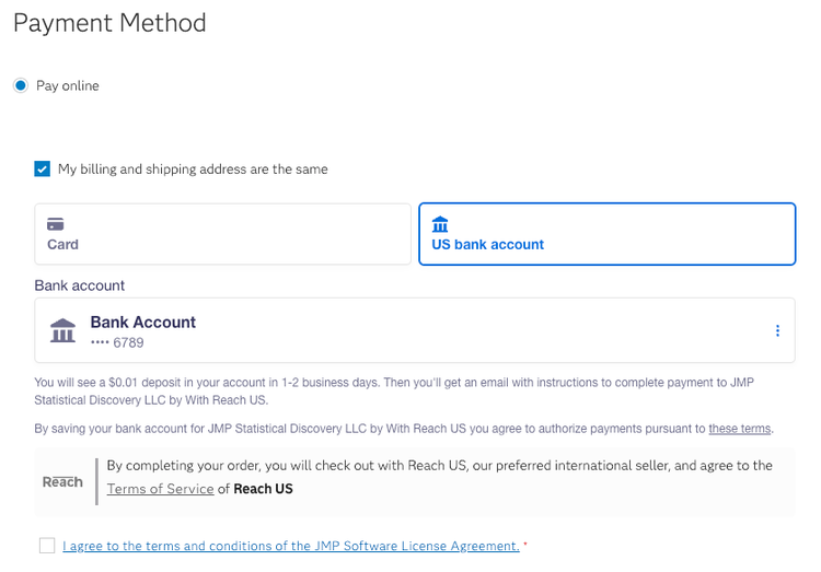 You’ll be able to use your JMP products within minutes. Once funds are successfully transferred, you will receive an updated invoice.
