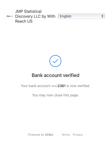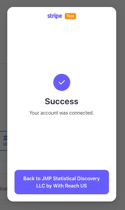 After successfully connecting your bank account, confirm the success message by clicking the blue button at the bottom of the screen.