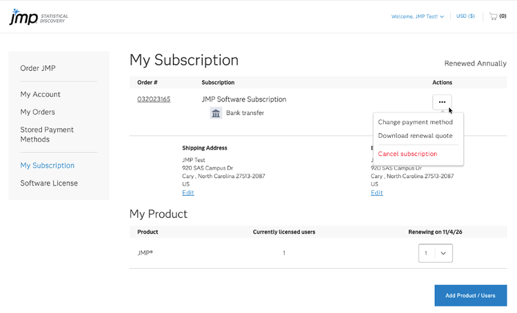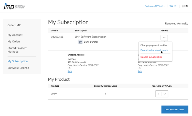Downloading a Renewal Quote in the JMP Store