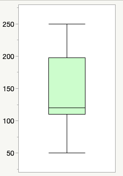 - Muestra la distribución de los datos. Partes de la caja identifican el percentil 25, la mediana (percentil 50) y el percentil 75. En función de los datos, los bigotes muestran el mínimo y el máximo; los valores atípicos llegan más allá de estos. Se usan para localizar errores de datos y explorar una variable.