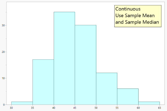 El histograma de la Figura 4 muestra datos casi simétricos. Si piensa en plegar el gráfico por la mitad, los dos lados serán prácticamente iguales. La media y la mediana son muy similares.
