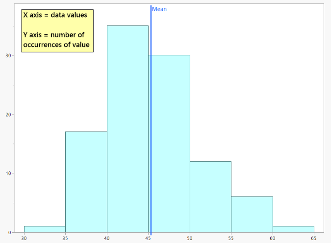 Suponga que tiene un conjunto de valores de datos y los representa como se muestra en la Figura 1. El eje horizontal muestra sus valores de datos. El eje vertical muestra cuántos puntos tienen un valor de datos determinado. En términos estadísticos, se trata de un histograma o distribución de valores de datos. La media estima el centro de los datos.