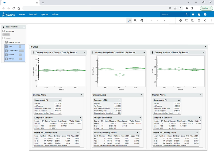 Les experts de votre entreprise utilisent JMP pour résoudre des problèmes complexes. Dotez-les d'une plateforme solide qui donne de la visibilité à leurs solutions et amplifie l'impact de leurs découvertes collectives. L'agrégation et le partage de ces résultats provenant de sources multiples dans JMP Live vous permettent d'accéder en permanence à l'avis de vos experts.