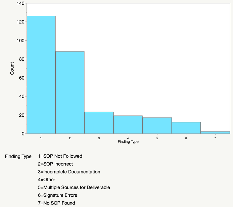 Le diagramme montre les types de résultats d'un audit de procédures opérationnelles. La découverte la plus habituelle est que la procédure normale d'exploitation (SOP) n'a pas été suivie.