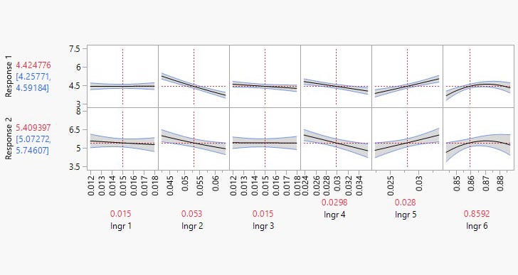 Molti dei primi successi del team sono stati ottenuti nell'ambito della formulazione chimica, dove i chimici avevano conoscenze pregresse in merito alle formulazioni ma dovevano adattare le miscele alle nuove condizioni. Il team aveva diverse idee su come ottenere la miscela desiderata aggiungendo una quantità maggiore di uno degli ingredienti principali, ma le prove statistiche a sostegno di tale intuizione erano limitate. Quando uno degli addetti alla formulazione si è rivolto a Goguelet per chiedere informazioni in merito agli approcci statistici, i due hanno collaborato per creare un piano della miscela con JMP. In netto contrasto con l'ipotesi del team, i risultati provavano un forte effetto non lineare tra due ingredienti principali in precedenza ritenuti scarsamente rilevanti. L'aggiunta di una quantità maggiore di quell'ingrediente non avrebbe avuto alcun impatto.