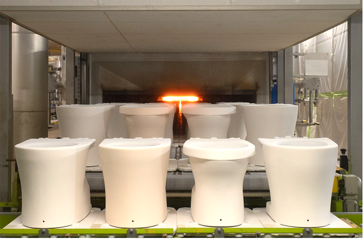 この「均質」という言葉が持つ重みは、同社の原点である「衛生陶器(便器・洗面器など)」の製造プロセスを知ることで、より鮮明に理解できる。「衛生陶器は、20種類以上の土や石といった天然原料と水を混ぜ合わせた『泥漿(でいしょう)』を原材料とする、いわば大型の焼き物です。成形から乾燥、焼成を経て完成するまでに、およそ13%もの収縮があります」と語るのは、同社 技術本部 技術統括部 上席技師の上田忠雄氏だ。