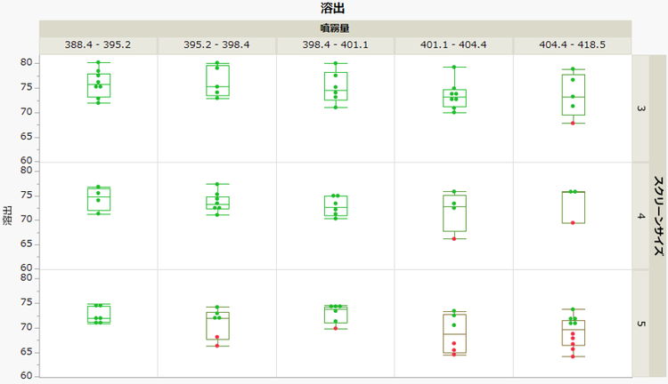 このアプローチにより、結果(目的変数)を小さくしたいときに、数値は大きいほうが良いのか小さいほうが良いのかといった傾向だけでなく、段階的に変化する閾(しきい)値の存在や、中央付近に存在する最適範囲を視覚的に検証できる。さらに、製品種別や曜日といったカテゴリ変数を「グループY」に追加すれば、属性ごとの傾向の差異も瞬時に比較可能だ。