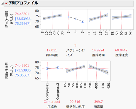 モデルのあてはめ(ステップワイズ法):JMPの「モデルのあてはめ」を用いた重回帰分析において、ステップワイズ法により重要な変数に絞り込んだモデルを構築。「てこ比プロット」と呼ばれるグラフを用いて、外れ値が分析全体に与える影響をチェックしたり、「予測プロファイル」という機能を使って、「他の条件を固定したまま、特定の因子だけを変化させた際の影響度」を可視化したりすることで、自身の仮説とデータ上の挙動に相違がないかを厳密に検証している。