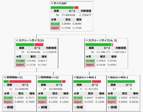 パーティション(決定木):複数の要因が複雑に絡み合う事象の解明や、閾値を具体的な数値として特定したい場合に活用している。