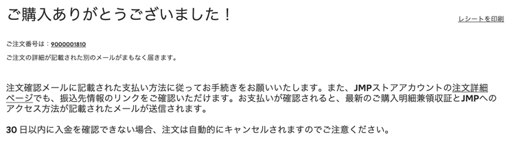5. ご注文完了後、数秒以内にJMPストアのアカウントに登録したメールアドレスにご注文完了のメールが届きます。メールには、請求書のPDFが添付されています。