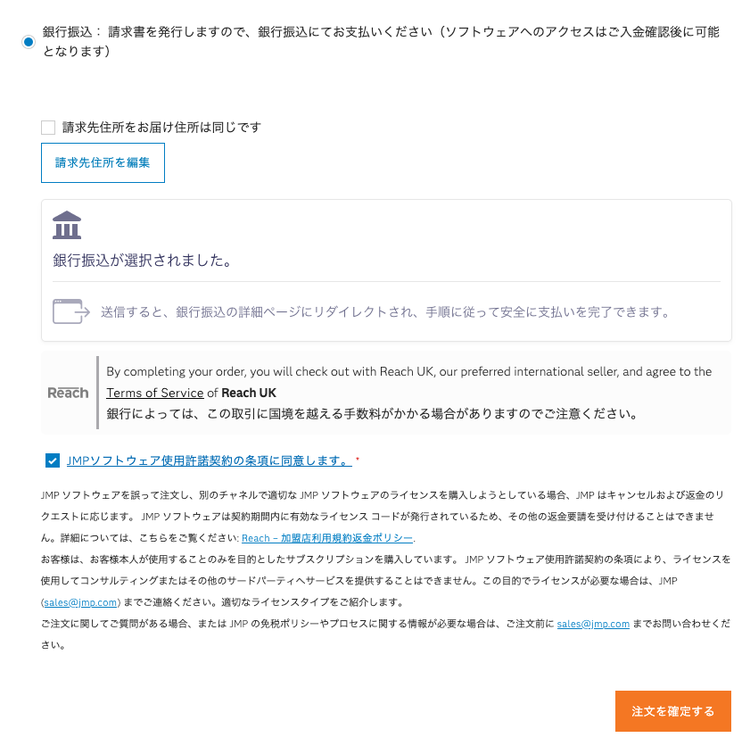 2. ご注文の確定前に、利用規約とJMPソフトウェアライセンス契約に同意してください。