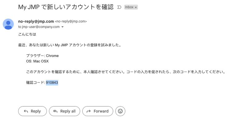 5. メールの受信ボックスに移動して「no-reply@jmp.com」から送信されたメールが届いているか確認してください。