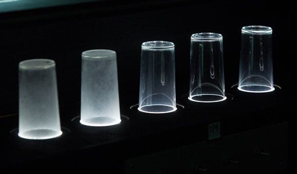 그는 JMP를 사용하여 기관용 식기 세척제, 산업용 세탁제 및 단단한 표면 세척제 제품의 시너지 효과를 내는 성분 조합의 성능을 평가하기 시작했습니다. 한 실험에서는 접시에 계란, 오트밀, 그레이비를 얹어 구운 다음 기관용 식기 세척기로 접시를 씻는 것이었습니다.