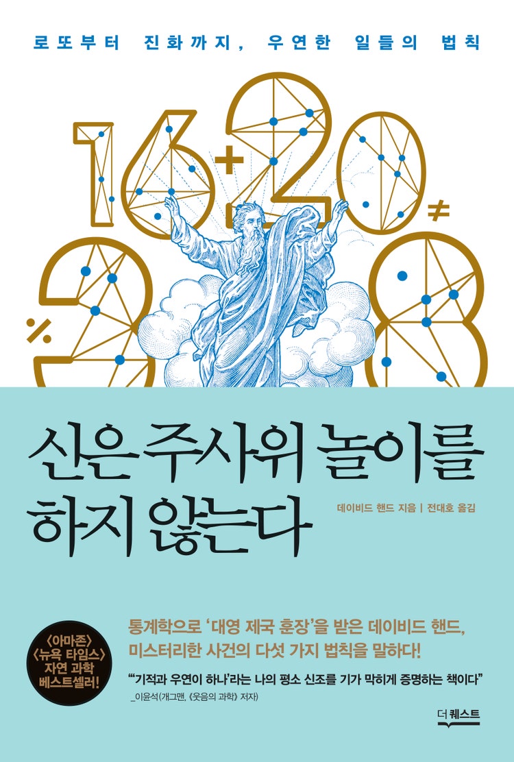 왕립통계학회 회장을 역임하고 대영 제국 훈장을 받은 세계적인 통계학자 데이비드 핸드는 《신은 주사위 놀이를 하지 않는다(The Improbability Principle)》를 통해 언뜻 보기엔 ‘말도 안 되는 일들’ 배후에 엄밀한 수학, 통계학적 법칙이 존재함을 말합니다. 미스터리한 사건들을 예로 들며, 그 뒤에 숨겨진 다섯 가지 ‘우연의 법칙’을 설명하고, 더불어 우리가 점괘나 종교나 미신에 의존하지 않더라도 충분히 세상 돌아가는 원리를 이해하고 대처할 수 있음을 역설하고 있습니다.