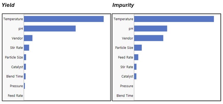 관심 있는 반응이 수율과 불순물인 제조 공정을 개발하고 있다고 가정해보겠습니다. 여러분에게 주어진 과제는 공정에서 수율을 최대화하고 불순물을 최소화하는 설정을 찾는 것입니다. 먼저, 어떤 요인이 반응에 영향을 미치는지, 그리고 어떤 방식으로 영향을 미치는지를 이해해야 합니다.