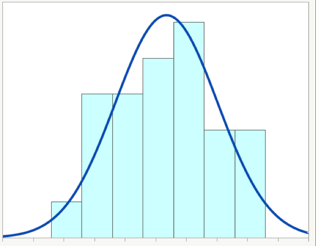 아래 그림 1은 이론적 정규 분포(파란색 곡선)와 함께 일련의 표본 데이터 값에 대한 히스토그램을 보여줍니다. 히스토그램은 데이터 값의 빈도를 보여주는 일종의 막대 차트입니다. 데이터가 곡선과 정확히 일치하지 않는 것을 확인할 수 있는데, 이는 흔한 일입니다. 실제로 이론적 정규 분포와 정확히 일치하는 데이터를 보면 여러 질문을 해야 합니다. 실제 데이터가 분포와 정확히 일치하는 경우는 거의 없습니다.