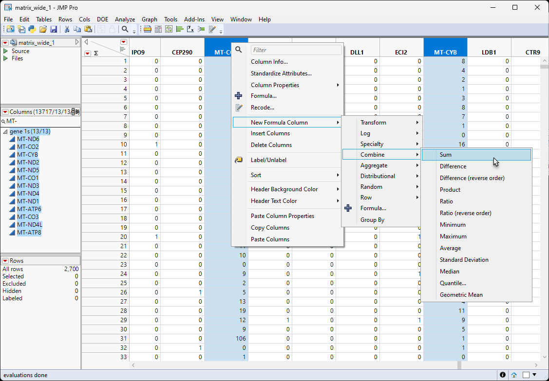 | 8 | Right-click on one of the highlighted columns and select New Formula Column > Combine > Sum. |