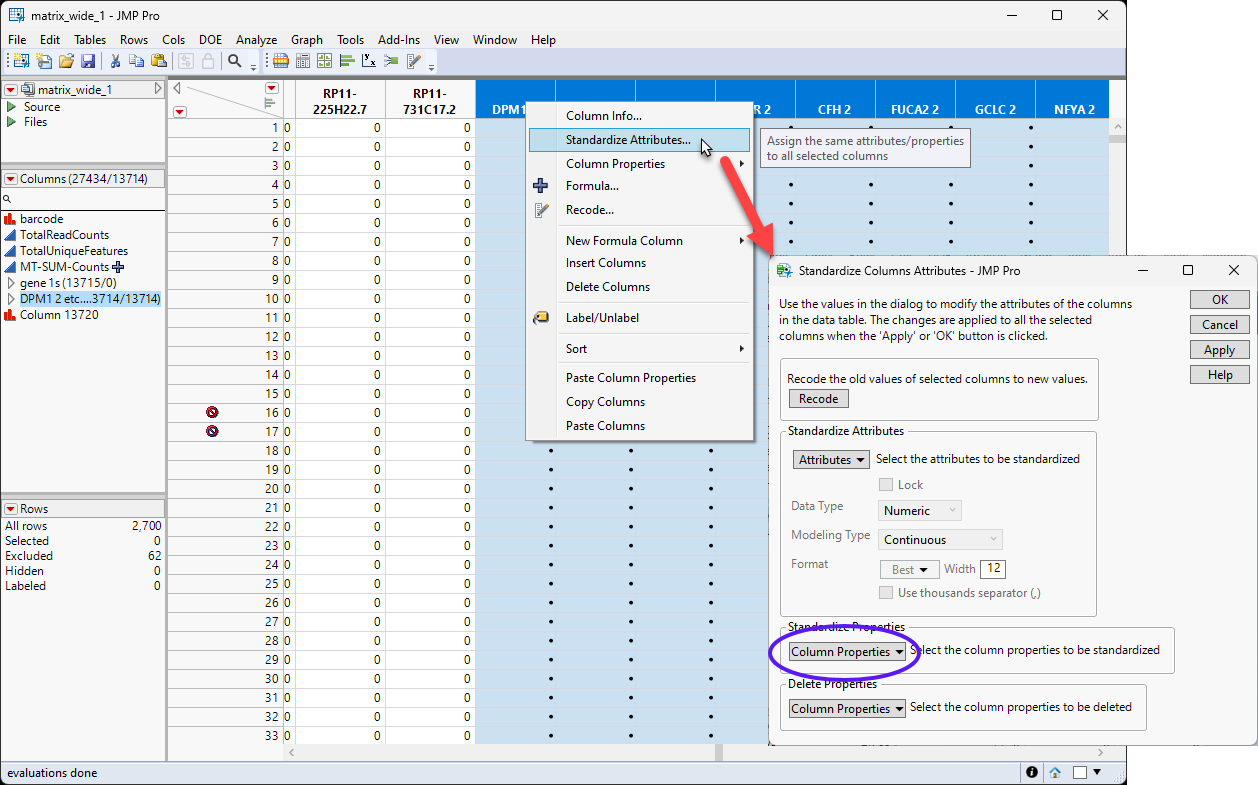 | 8 | Right-click in the ColumnName box of one of the selected new columns and select Standardize Attributes.... |