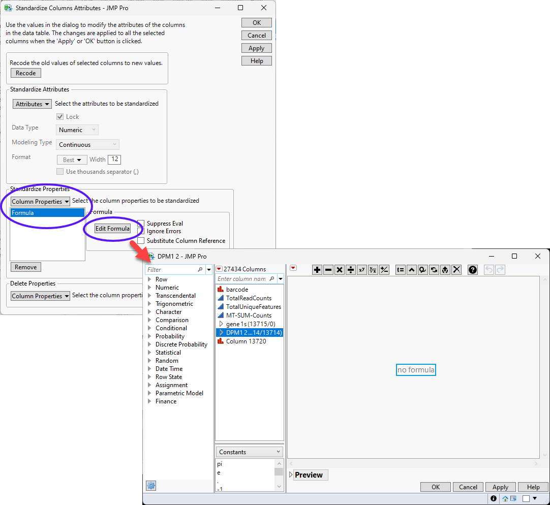 Note: The new, normalized columns have been grouped into a group called DPM1 2, etc....