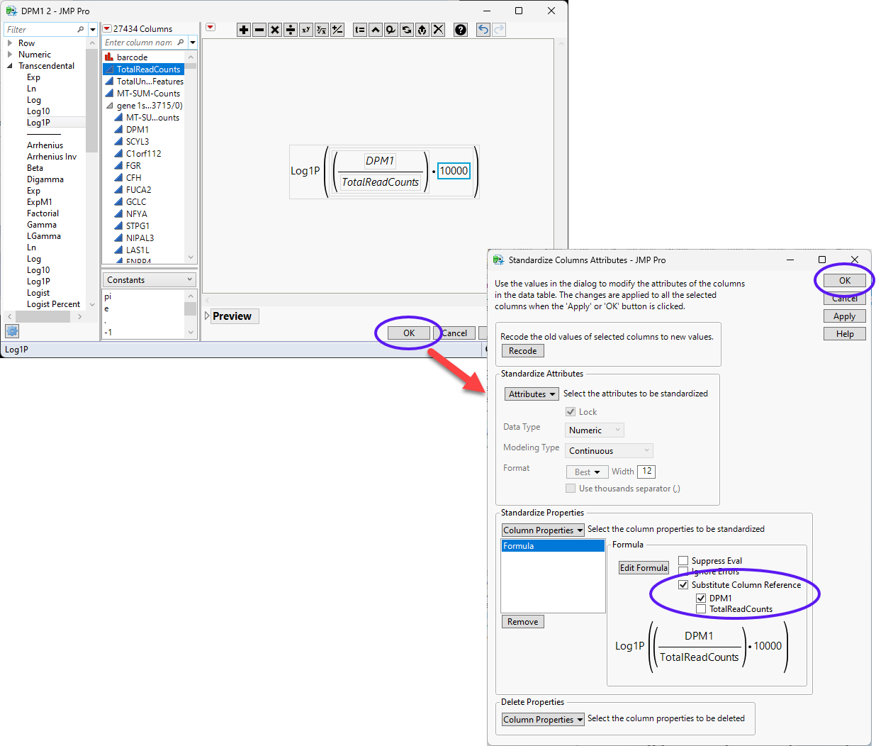 | 8 | Check the Substitute Column Reference check box and make sure the DPM1 box is checked but the TotalReadCounts box is unchecked. |
