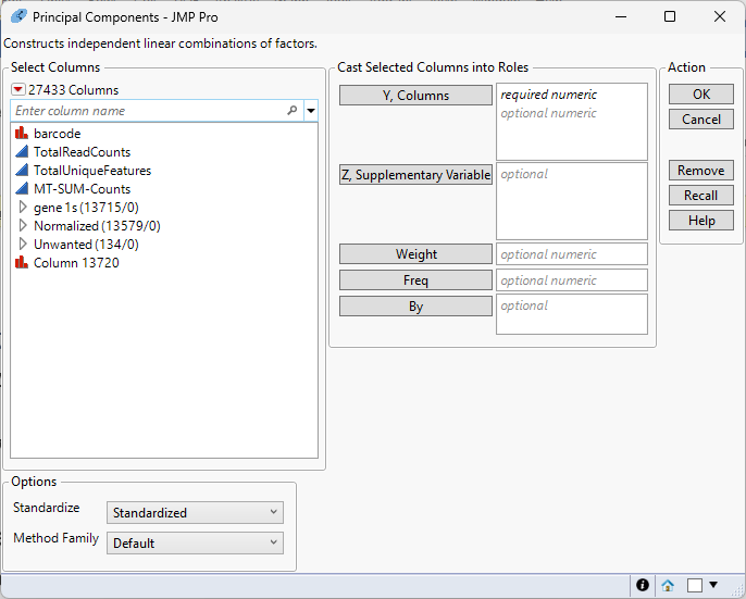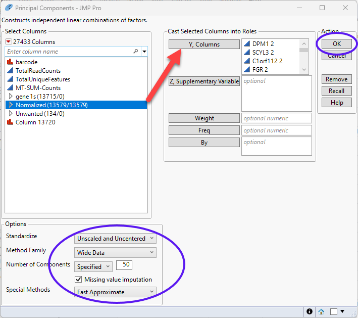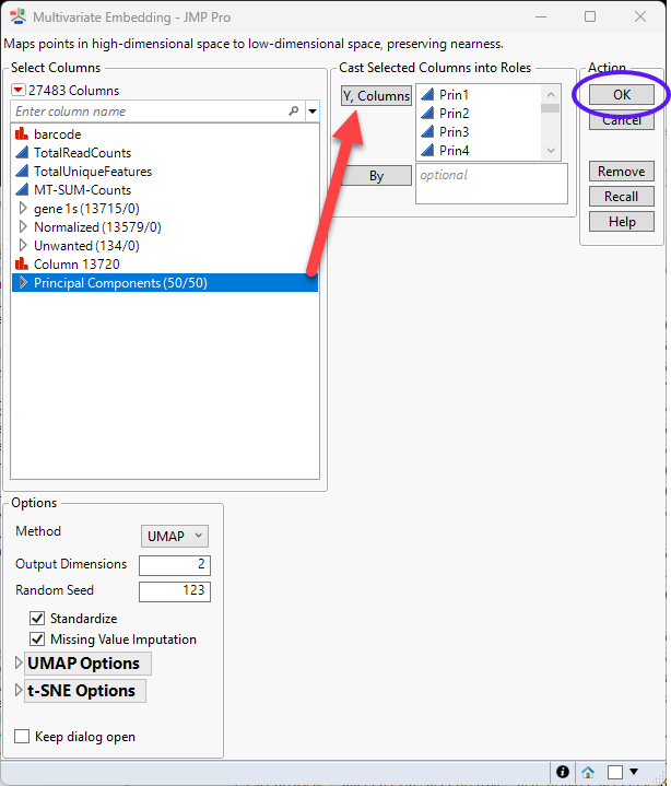 | 8 | Select the columns in the Principal Components group as the Y, Columns. |