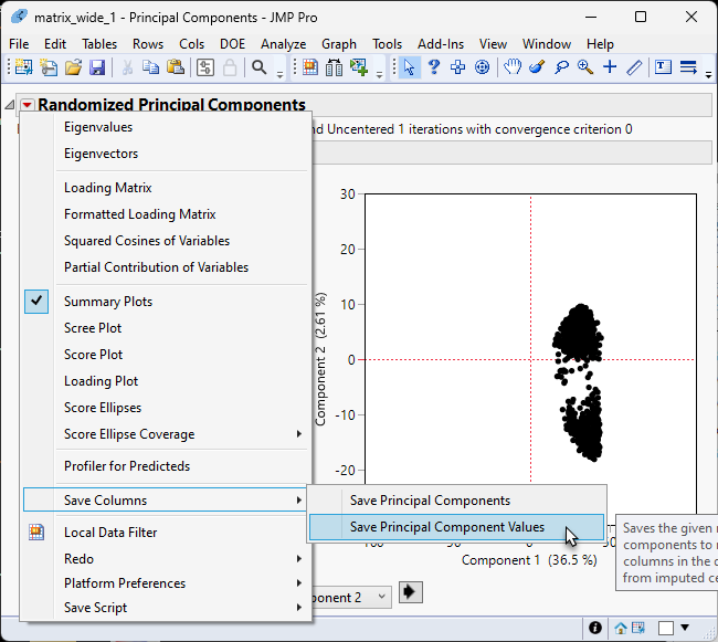 | 8 | Click and select Save Columns > Save Principal Component Values. |
