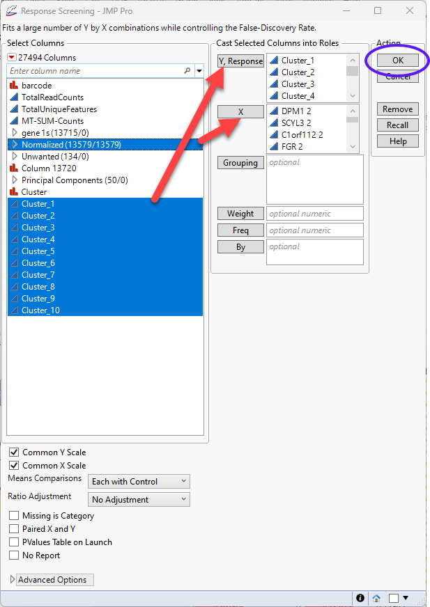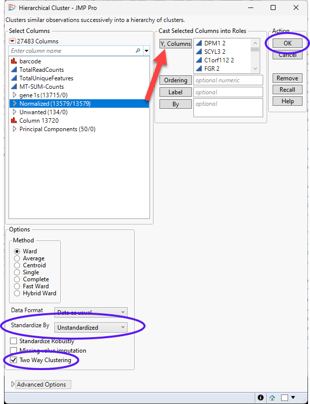 | 8 | Select the columns in the Normalized group as the Y, Columns. |