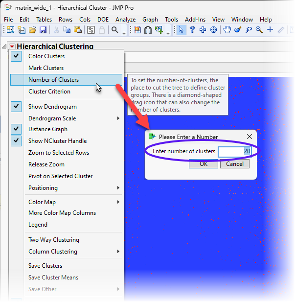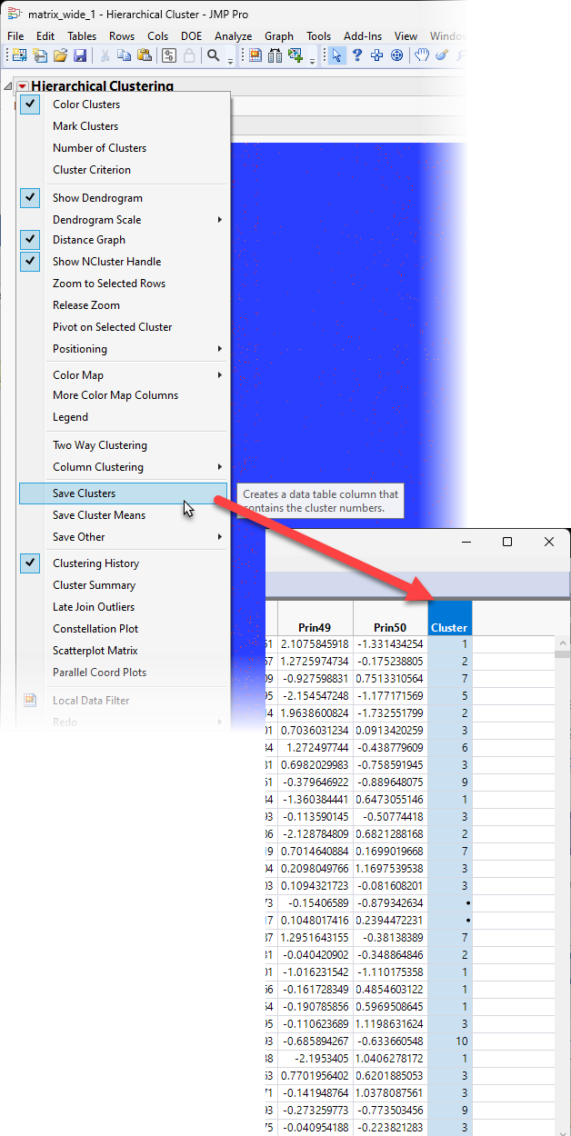 | 8 | Click and select Save Clusters to add a column to the end of the table identifying the cluster to which each sample belongs. |