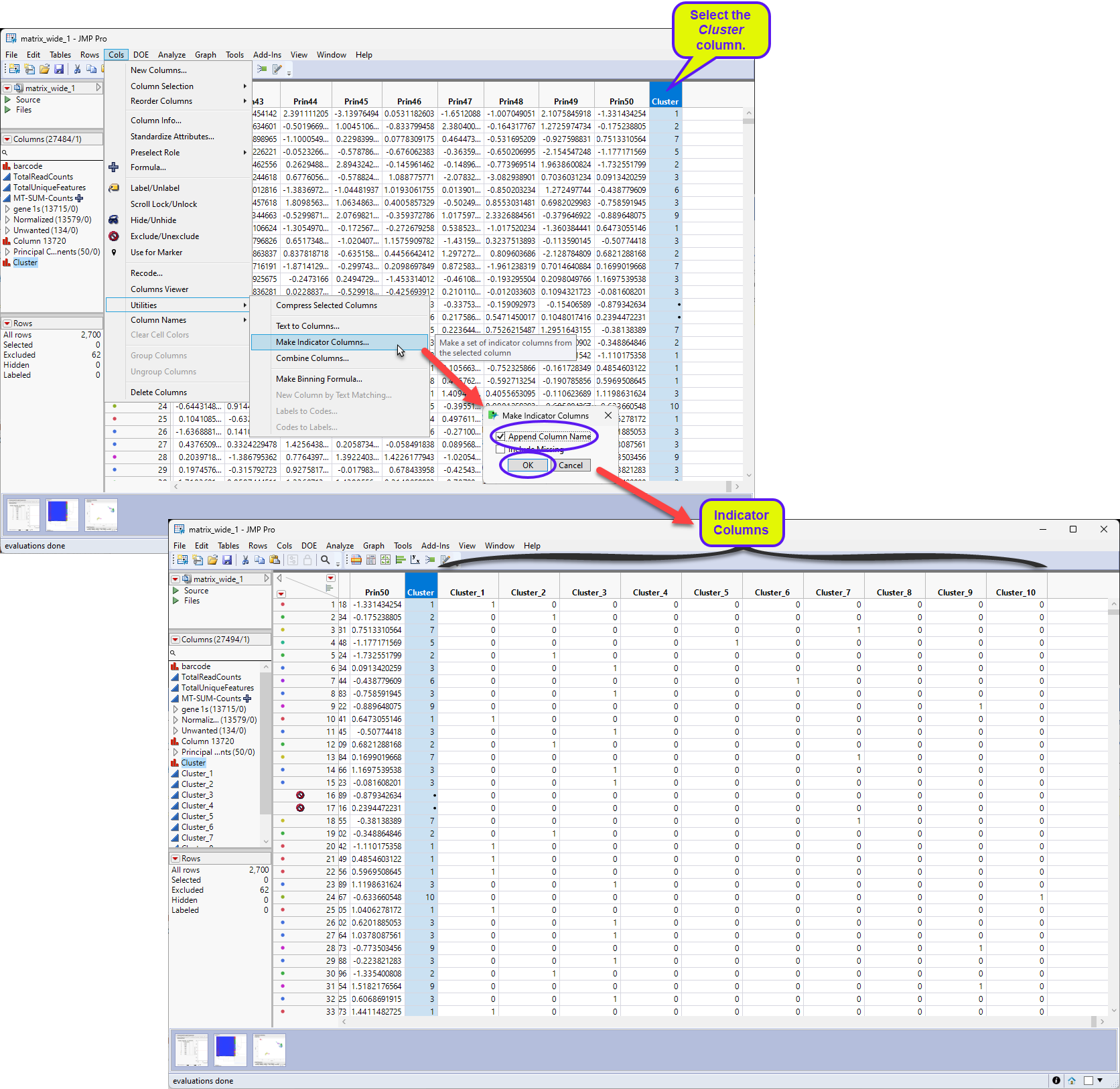 | 8 | Click to replace the column headers in the matrix_wide.jmp table. |
