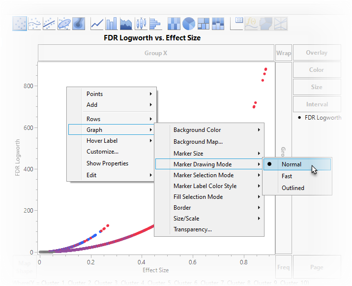 | 8 | Right-click anywhere in the graph and select Graph > Marker Darwing Mode > Normal. You may notice that the points appear larger. |