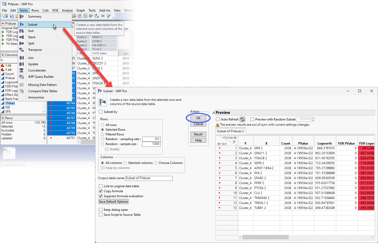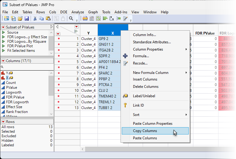 | 8 | Make sure the sorted PValue.jmp table is open and active. |