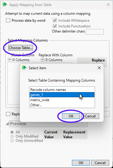 | 8 | Select gene 1 as the Match Column and gene 2 as the Replace With Column. Click . |