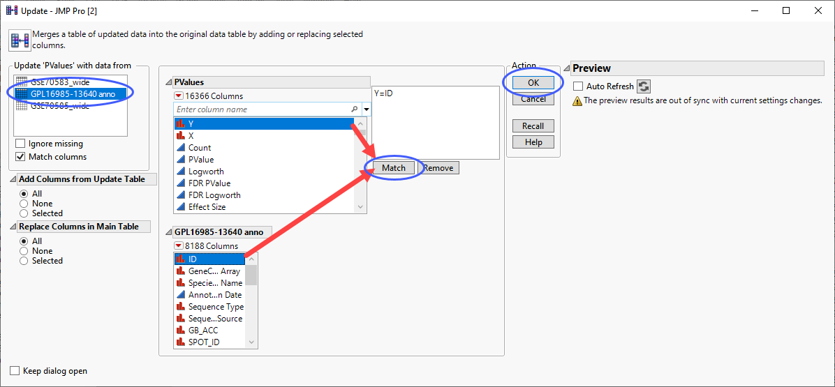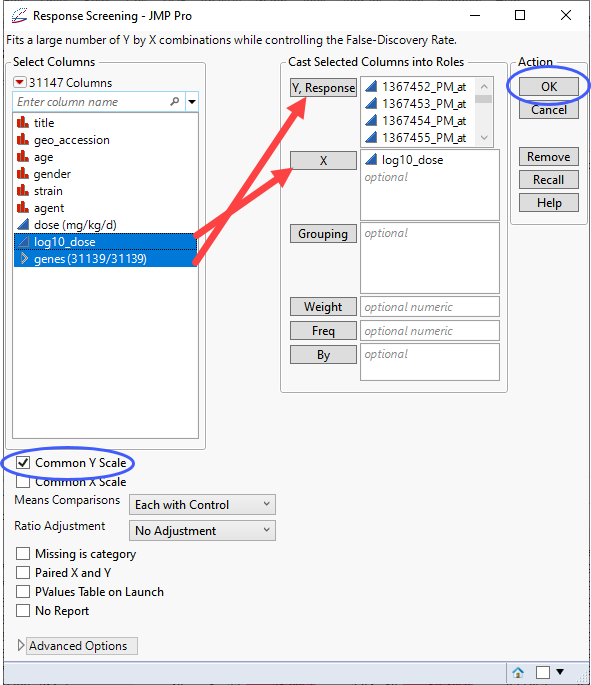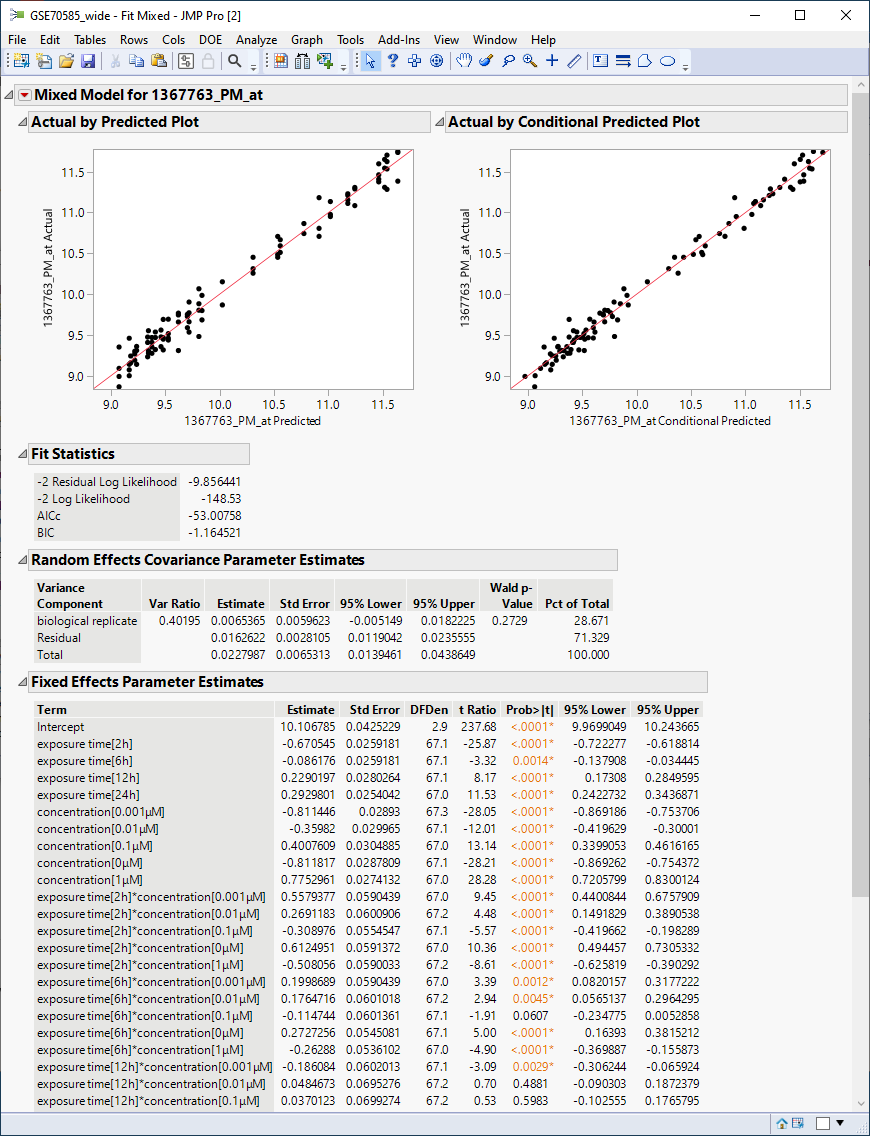 | 8 | Select the original GSE70585_wide.jmp table and click Analyze> Fit Model. |
