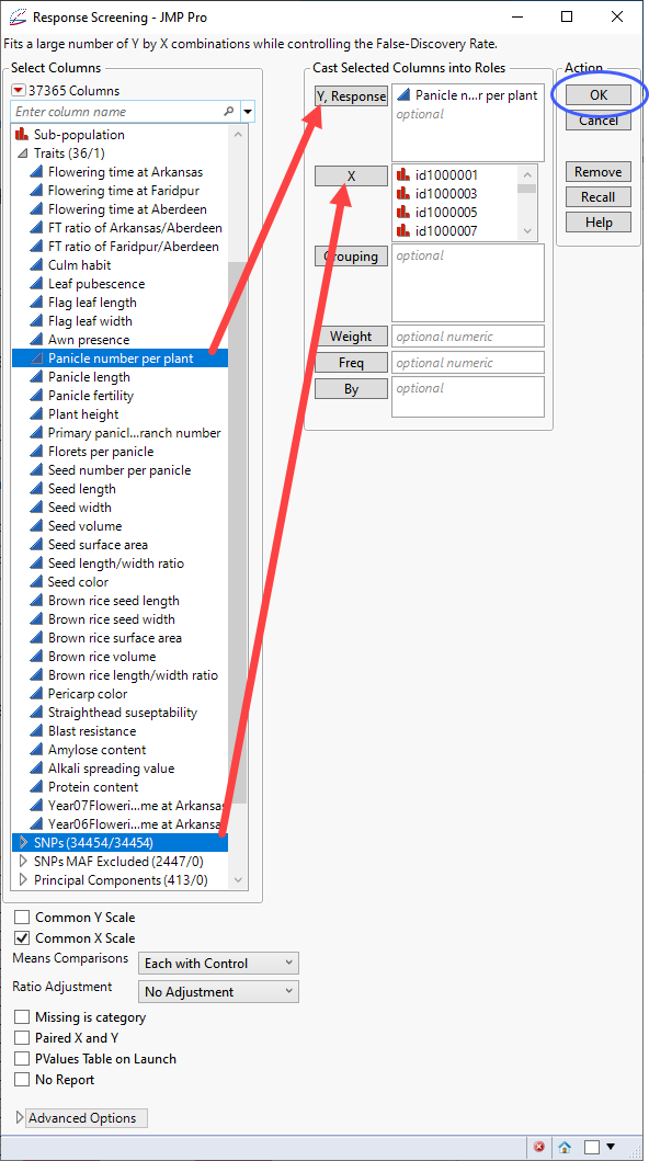 | 8 | Select the Panicle number per plant column from the Traits group as the Y. |